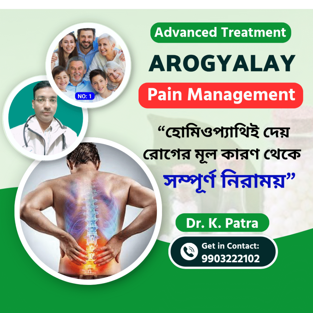 Introduction:Pain is a common health complaint affecting people of all ages. Whether it is acute pain from injury, chronic pain from arthritis, or nerve-related discomfort, proper management is essential. Homeopathy provides a holistic and safe approach to manage pain by addressing the root cause, reducing inflammation, and improving overall body function.Dr. K. Patra at Arogyalay