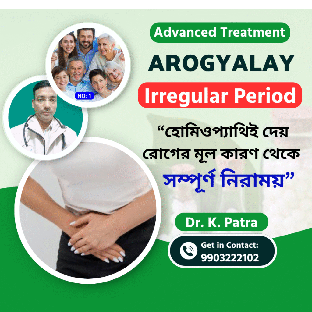 Introduction:Irregular periods (menstrual irregularity) are one of the most common issues affecting women of all ages — from teenage girls to post-reproductive age. Irregular cycles often indicate hormonal imbalance, thyroid disturbance, or stress-related dysfunction.At Arogyalay Homoeo Care, Subhasgram, Kolkata, Dr. K. Patra (Experience 10+ years) provides natural, safe, and effective homeopathy treatment that helps restore