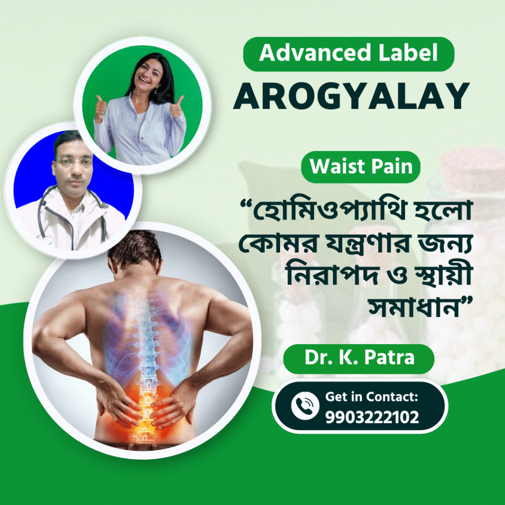 Are you suffering from waist pain or lower back pain that keeps coming back again and again?Don’t ignore it — your body is trying to tell you something! At ArogyaLay Homoeo Care, we provide the best homeopathic treatment for waist pain, offering natural, safe, and long-lasting relief without side effects. 🌟 Common Causes of Waist